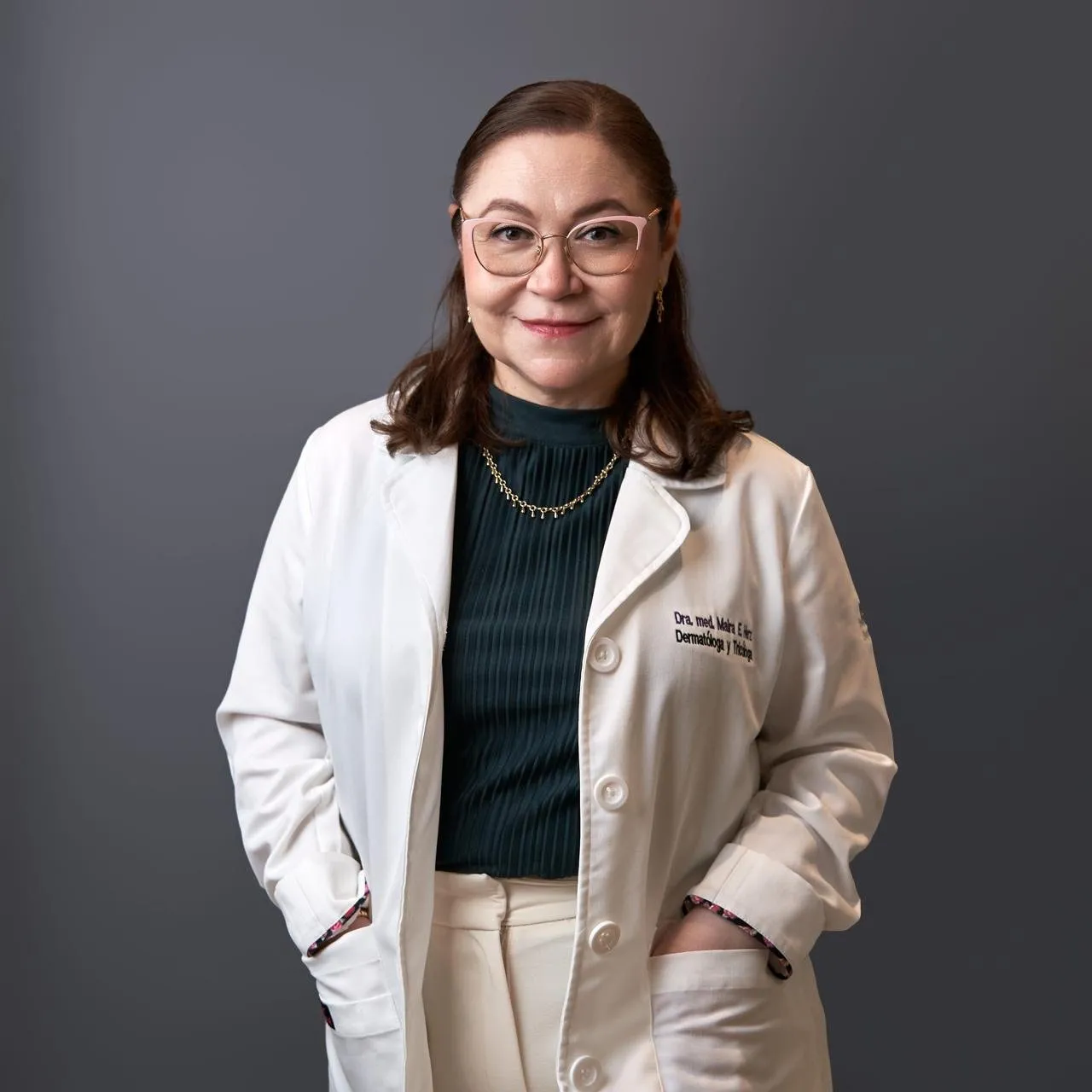 La Dra. med. Maira Elizabeth Herz Ruelas es dermatóloga certificada y tricóloga con doctorado en medicina por la U.A.N.L., con formación internacional en UT Southwestern Medical Center y Parkland Memorial Hospital en Dallas. Especialista en enfermedades dermatológicas complejas, inmunomediadas y crónicas, así como en fototerapia, terapias biológicas e inhibidores JAK.